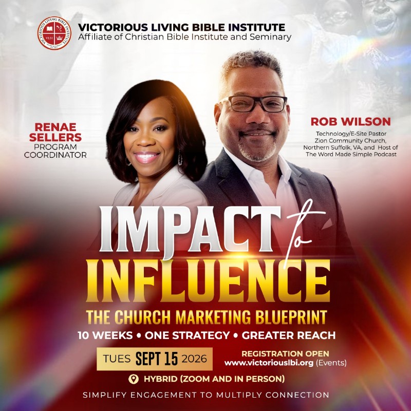 Impact to Influence: The Church Marketing Blueprint is a 10-week certificate training designed to equip ministry leaders with practical strategies to expand reach, strengthen visibility, and communicate their mission with clarity and excellence. Learn how to move your ministry from impact to influence on purpose.